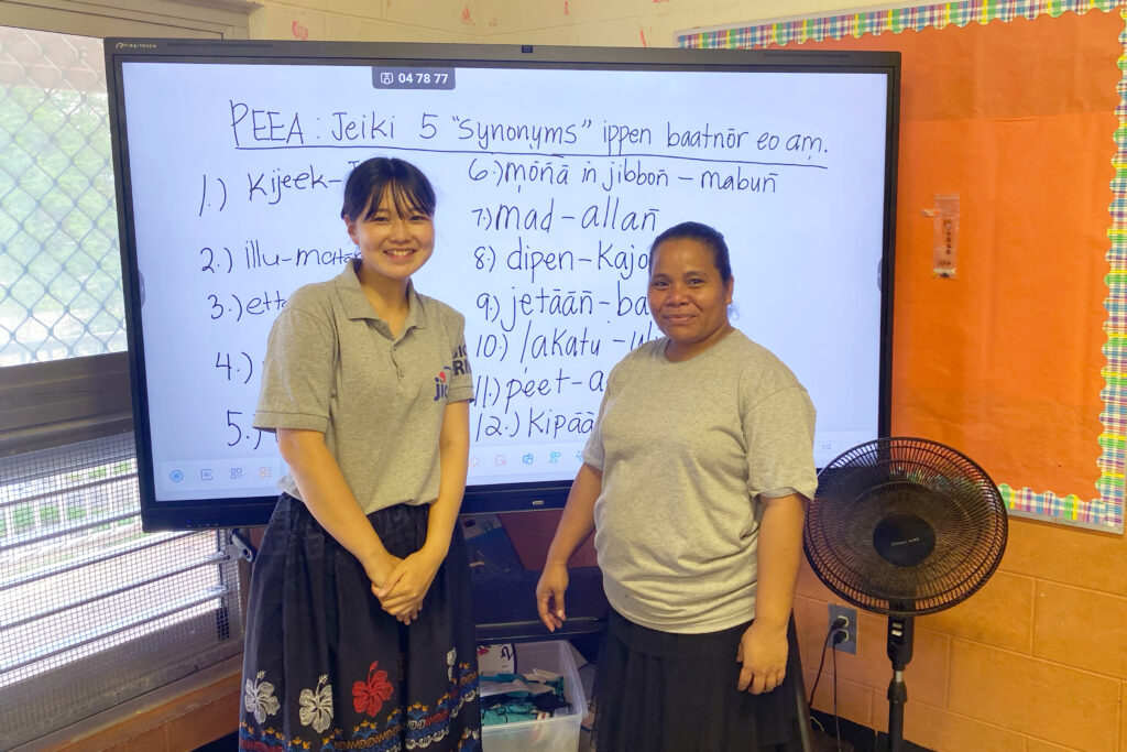 JICAでは、開発途上国の経済・社会の発展や異文化社会の相互理解の促進などを目的に、「自分の持っている技術・知識や経験を開発途上国の人々のために生かしたい」という強い意欲を持つ方々を派遣するボランティア事業を実施しています。今回は、JICAが教育支援を行うマーシャル諸島共和国に、青年海外協力隊として派遣された現役教員の加藤様・宮崎様より依頼を受け、この寄贈が実現しました。