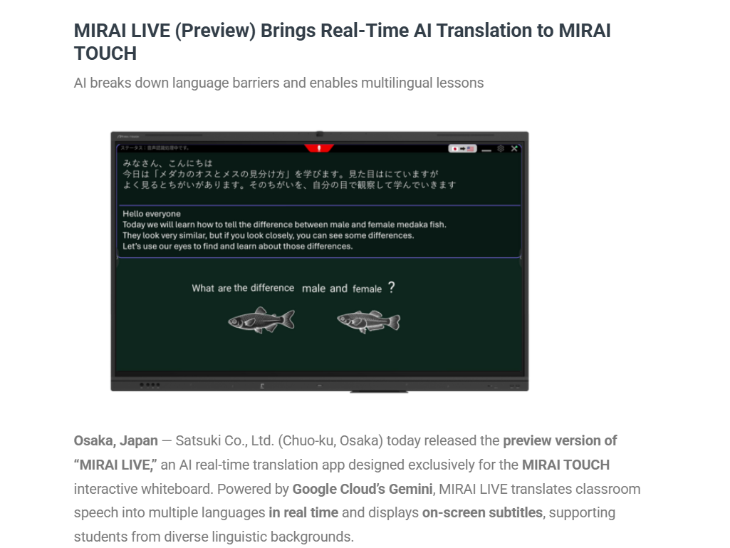 リアルタイム翻訳アプリ 「MIRAI LIVE」 が、特集記事
